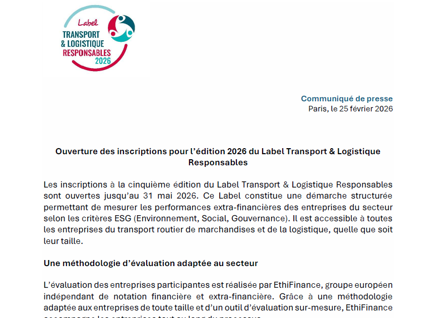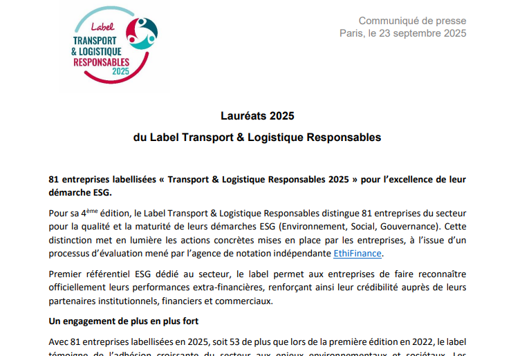 La labellisation c’est d’abord une démarche d’évaluation annuelle qui permet de mesurer les performances extra financières d’une entreprise sur les critères ESG, elle est ouverte à toutes les entreprises de transport routier de marchandises et de logistique.